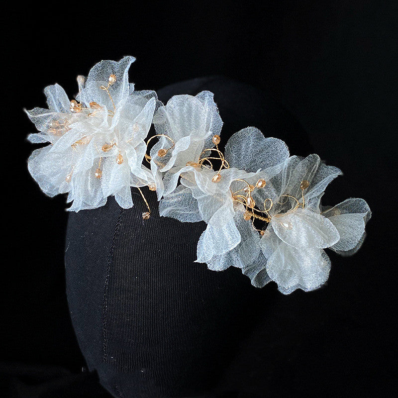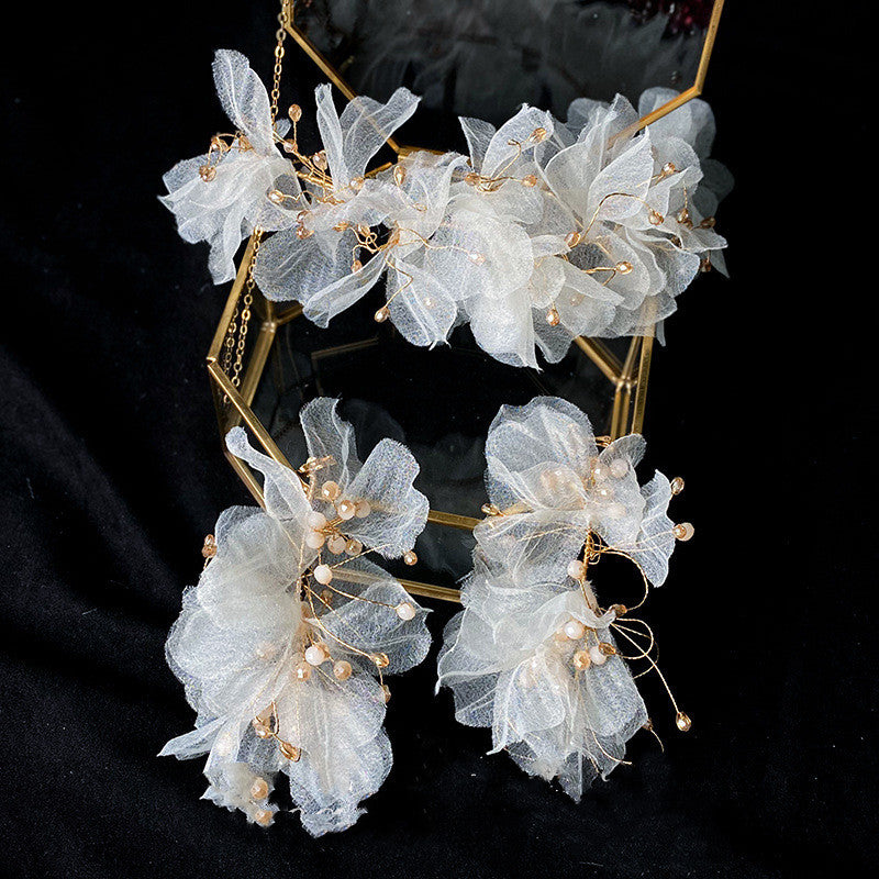 Women's Tulle Flower Headband Earring Set