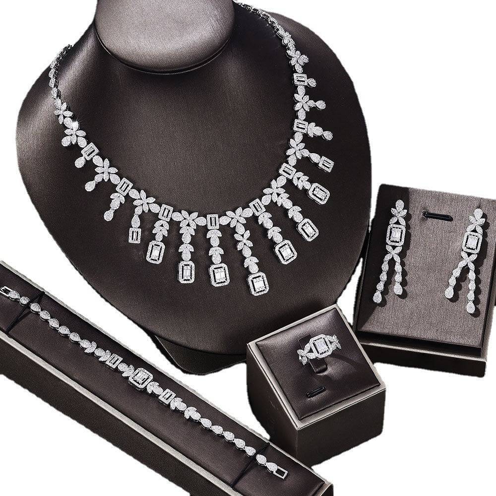 Zircon Necklace Earrings Bracelet Ring Set Of Four